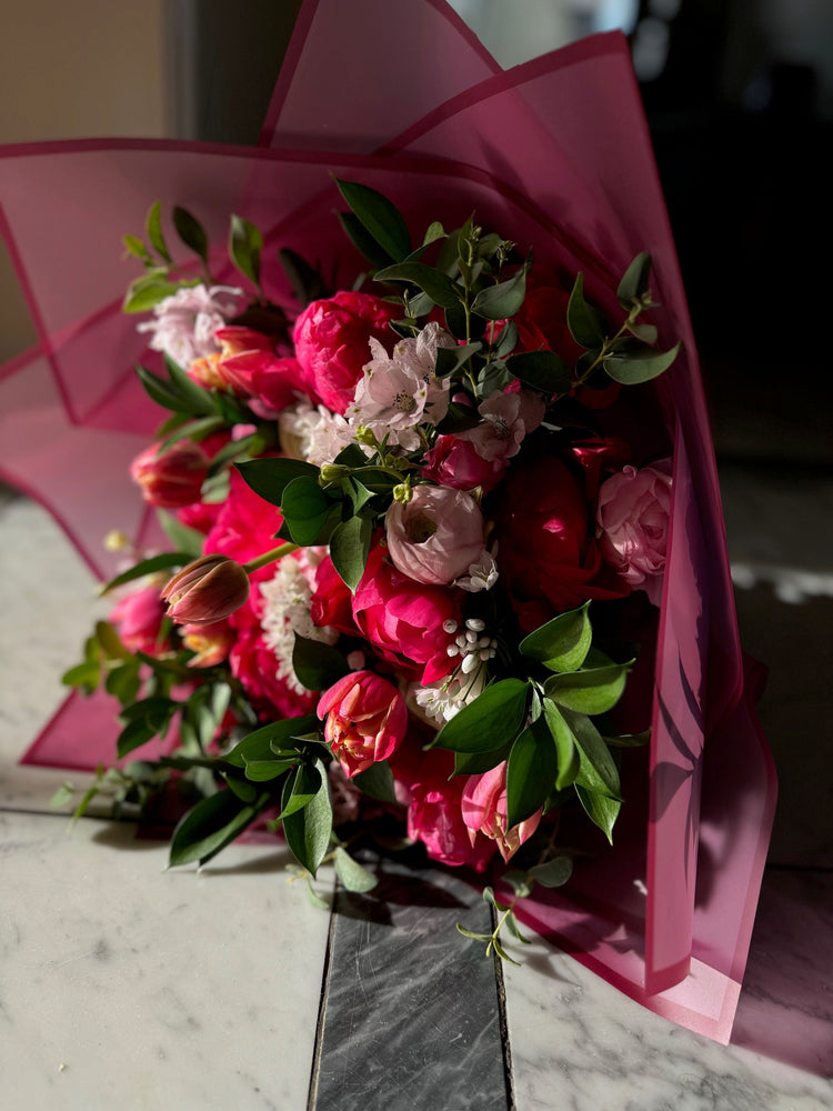 Todos nuestros ramos son de flores y follaje de corte fresco, de distintos tamaños, formas y paletas de colores puedes escoger el que mejor se adapte a tus necesidades.